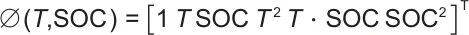 为充分捕捉T与SOC对EIS特征参数的交互影响,首先对T和SOC进行二阶多项式扩展。将2维输入向量[T SOC]T转换为6维特征空间,如下所示: