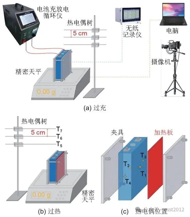 现有研究多集中于单一滥用条件(如过充或加热)下的热失控演化机制分析,而针对不同触发条件的对比研究及危害量化评估研究方面,尚未形成全面且深入的认知体系,还需要更多的实验和研究。已有研究表明,锂离子电池荷电状态(SOC)为100%时,热失控反应的剧烈程度与危险性最大。基于此,本研究选取280 Ah商用磷酸铁锂电池为研究对象,通过设计阶梯式过充倍率与加热功率实验方案,系统探究过充与加热滥用触发条件下电池热失控行为差异。通过对比分析两种触发模式下电池热失控过程动力学参数的差异,基于工程实际应用,建立多参数耦合的简化评估模型,为磷酸铁锂电池系统安全防护策略优化提供科学依据。